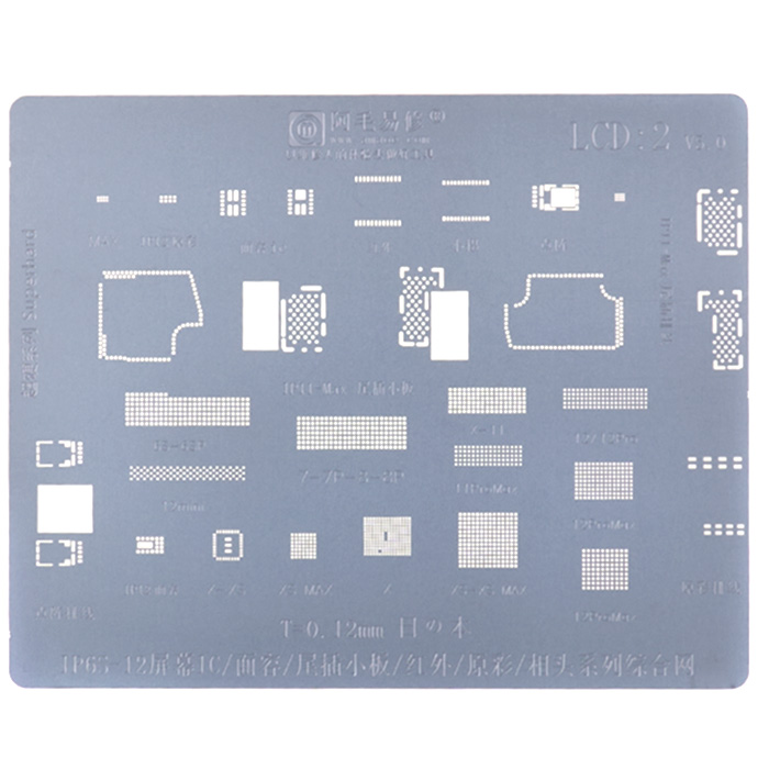 Трафарет BGA Amaoe LCD:2 для iPhone 6S,7,7 Plus,8,8 Plus,X,Xr,XS,XS Max,11,11Pro,11Pro Max,12,12 Pro