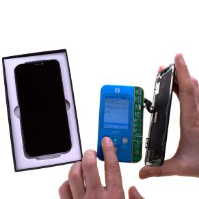 Для того, чтобы в телефоне корректно работала цветопередача и баланс белого, при замене дисплея специальным программатором перезаписывается информация со старого дисплея на новый.
